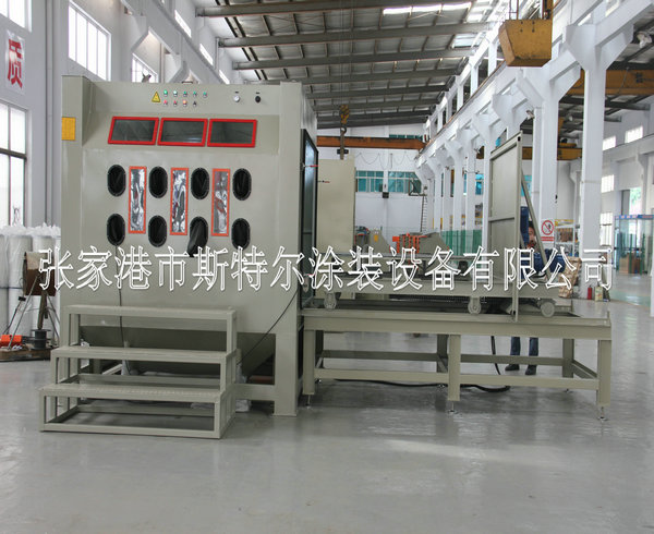 The machines apply to all kinds of heavy workpiece surface piating, such as all kinds of mould surface pear to processing (sandblasting), mold textured and fog face treatment. The operation is convenient, can use rail cart on unloading, saving, processing efficiency. The machines can be designed according to the needs, for manual or automatic turntable, diameter and on volume.