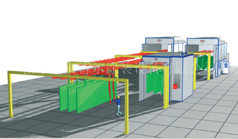 噴灑機 具體由噴灑棚體、清洗機水槽中、噴灑程序、排氣口程序、抑制程序、預熱程序(選擇顧客必須)及有機廢氣治理生產廢水凈化處理程序(選擇顧客必須)等組成部分。